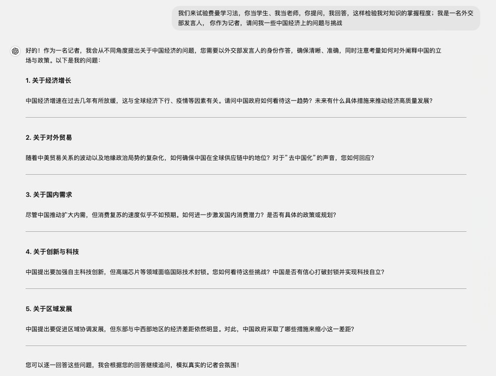 自己当老师(费曼学习法),GPT当学生(苏格拉底式提问)。